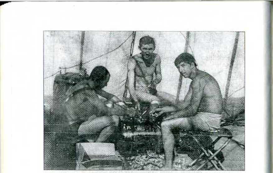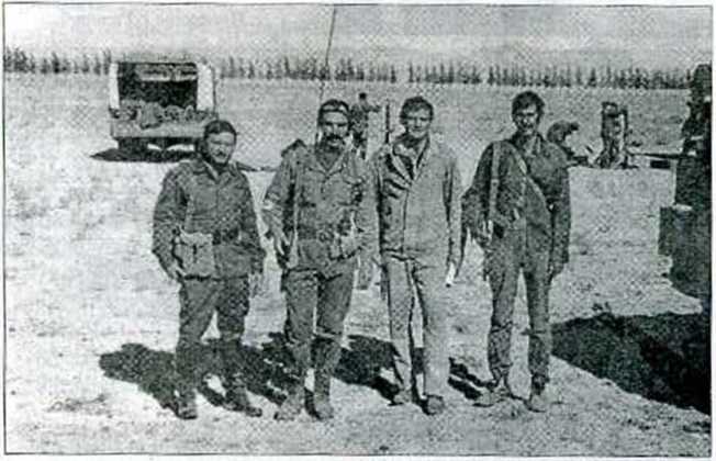 Ждем «ниточку». Слева направо: л-т А. Попов (г.Омск), ст. л-т В.Сахно. ст. л-т В.Болдырев. майор Абакумов.