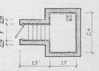 В настиле перекрытия погреба предусматривают л ю к размером 70x70 см, под которым устанавливают наклонную л е с т н и ц у.