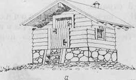 В погребе с погребицей в жаркое время прохладно, а зимой намного теплее, чем на улице. Погребица, находясь на поверхности, предохраняет заглубленный погреб от атмосферных осадков, промерзания зимой или перегрева в летний период. Она используется либо как вспомогательное помещение для кратковременного хранения овощей, либо для складирования садово-огородного инструмента, лесоматериалов и пр. (рис. 11).