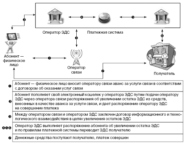 Как уже было сказано ранее, Закон № 161-ФЗ стал первым нормативным правовым актом федерального уровня, которым, в частности, была создана основа для развития института мобильных платежей в России. Со вступлением в силу положений Закона операторы связи получили право взаимодействовать с кредитными организациями на основании договоров с целью увеличения остатков электронных денежных средств абонентов за услуги связи, а также осуществлять функцию информационных посредников кредитных организаций. Как следует из правовой конструкции ст. 13 Закона № 161-ФЗ, оператор связи не может напрямую по распоряжению своего абонента списывать денежные средства для совершения мобильных платежей. Он должен обратиться к оператору электронных денежных средств (кредитная организация, в том числе небанковская кредитная организация, имеющая право на осуществление переводов денежных средств без открытия банковских счетов, включая переводы электронных денежных средств) (далее – оператор ЭДС), с которым у него заключен договор.