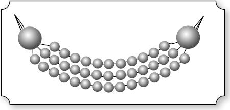 Несколько нитей из бисера или стекляруса можно собрать вместе, пропустив их концы через крупные бусины и закрепив замочки (рис. 4).