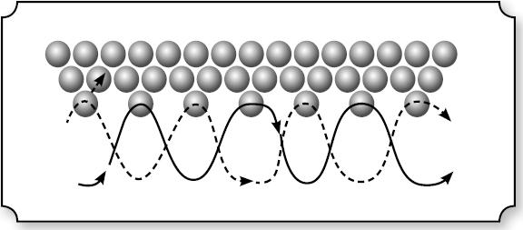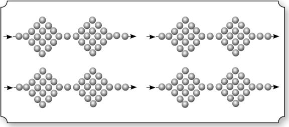 Вариантов соединения цепочек очень много. Их можно соединять по всей длине или через определенные промежутки, закрепляя нить, а затем вплетая ее вновь либо двигаясь через крайние бисерины цепочек и набирая на нить бисер, соединяющий ряды (рис. 32).