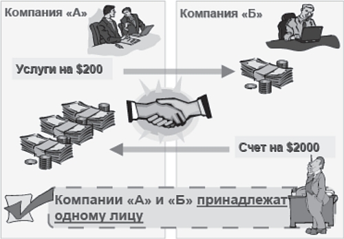 Рис. 6. Сделка, направленная на отмывание денег посредством оплаты услуг по чрезмерно завышенным тарифам
