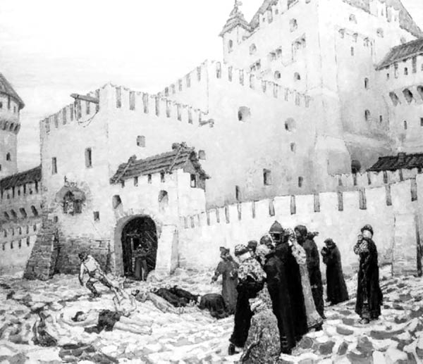 Константино-Еленинские ворота московского застенка на рубеже XVI и XVII вв. С картины A. M. Васнецова