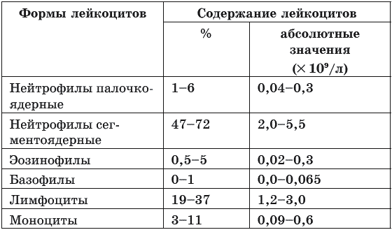 Лейкоцитарная формула – это соотношение в крови различных форм лейкоцитов, выраженное в процентах. Нормативные значения лейкоцитарной формулы представлены в табл. 1.