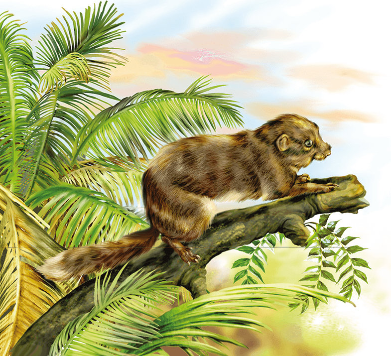 Как же выглядели древнейшие приматы, жившие так давно, что и представить трудно? Скорее всего, это были небольшие зверьки (приблизительно от 100 г до 3 кг весом), которые питались частично растениями, частично насекомыми и вели преимущественно древесный образ жизни. Внешне они больше всего походили на современных тропических белок. Обитали первые приматы главным образом в Северной Америке и Западной Европе (эти два материка в то время еще были соединены широкой полосой суши), хотя отдельные ископаемые происходят также из Южной и Восточной Азии и из Африки (Азия и Африка тогда также имели несколько иные очертания).