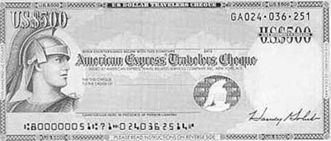 Разновидности Дорожных Чеков American ExpressЧек для двоих (American Express Cheque for Two). Выпускается только в американских и канадских долларах и продается в США и Канаде. Он позволяет двум лицам использовать один и тот же набор чеков. Оба владельца подписывают чеки перед поездкой, и любой из них может поставить контрольную подпись и обналичить чеки. Если Вам предъявляют к оплате чек для двоих, контрольная подпись, проставленная в Вашем присутствии, должна совпадать с первой или второй подписью в левом верхнем углу.