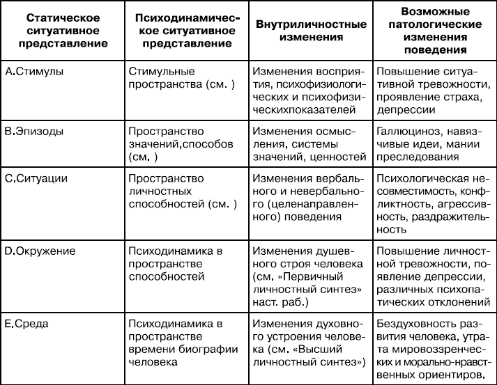 Уровень С – описание собственно ситуации с точки зрения физических, временных и психологических параметров, определяемых внешними условиями. Через призму ситуации в целом человек воспринимает, наделяя их значением, различные стимулы и эпизоды.