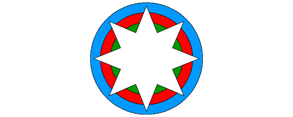 Восьмиконечная звезда справа от полумесяца, также не несет какой-то «религиозной нагрузки». В азербайджанской мифологии она обозначала Сириус – звезду всех путников, светило, организующее великое пространство и время. Так же она – символ духовной культуры древнего Азербайджана. Подтверждением тому служат ее изображения, в том числе и в стилизованной форме, на азербайджанских коврах с начала I тыс. до н. э., национальных вышивках, ювелирных изделиях и других предметах национального декоративно-прикладного искусства. Со временем она стала общенациональным символом Азербайджана.