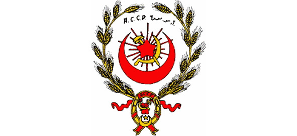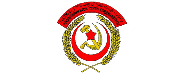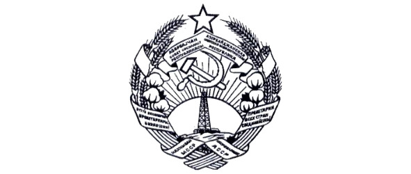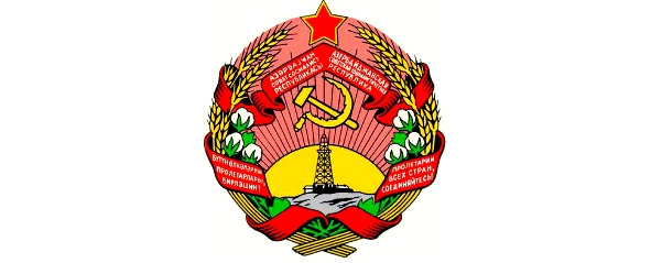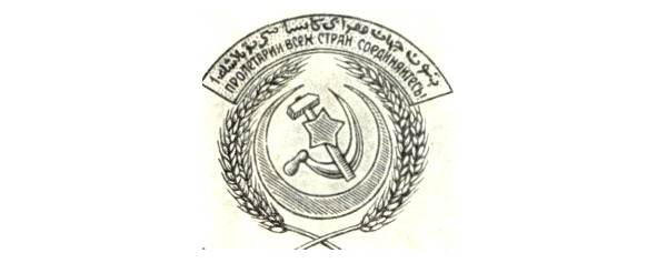 Первым же гербом советской республики стала расположенная внутри опрокинутого полумесяца пятиконечная звезда поверх перекрещенных серпа и молота.