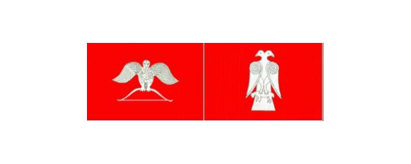 В «Истории Армении» Фавстоса Бузанда (V в.) косвенно упоминается о знамени царей династии Мамиконянов. Считается, что в ней описано красное знамя с изображением орла, держащего лук, так как в той же «Истории Армении» указано, что шах Ирана послал наследнику армянского престола красный шатер, но это никак не связано с цветом знамен. Кроме того, армянские историки на основе скульптурных изображений в древних церквях, в частности – на фасаде церкви в селе Дсех (VII в.), реконструировали герб династии Мамиконянов – двуглавый орел, держащий в когтях животное, очевидно, барана. Однако велика вероятность, что эти изображения в церквях являются просто архитектурным декором.