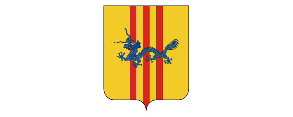 Первым гербом независимого государства на юге Вьетнама стал щит, повторявший рисунок флага, в центре которого был изображен дракон.