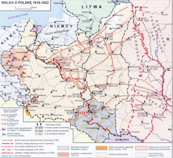 14 августа польская армия перешла в контрнаступление под Варшавой, начав разгром войск РККА на берегах Вислы, а 16 августа она начала наступление по всему фронту и войска РККА «откатились свыше чем на 400 километров, десятки тысяч людей попали в плен23, остатки войск были морально сломлены».24