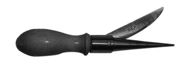 Сверло, подлежащее заточке, плотно надевают на конус. Большим пальцем прижимают нож и вращают сверло. Заточенный край должен иметь ровную поверхность в виде правильного усеченного конуса.