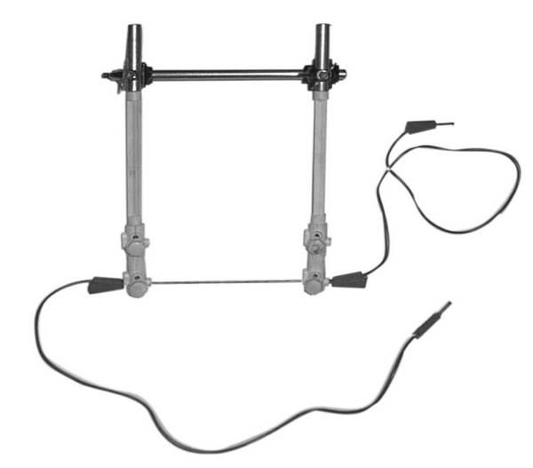 Одна из основных операций по обработке этого материала состоит в изготовлении бруска необходимой формы. Резку пенопласта удобнее производить с помощью электрического лобзика. Лобзик собирают, закрепляя на коротком стержне от универсального штатива с помощью крестообразных муфт два стержня с изолирующими стойками. Между стойками натягивают нихромовую проволоку. Подойдет проволока от вышедшего из строя реостата или от спирали электроплитки. Общий вид лобзика показан на рис. 6.5.