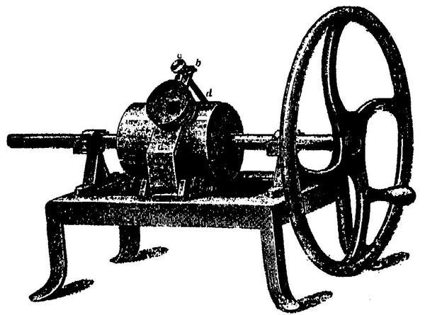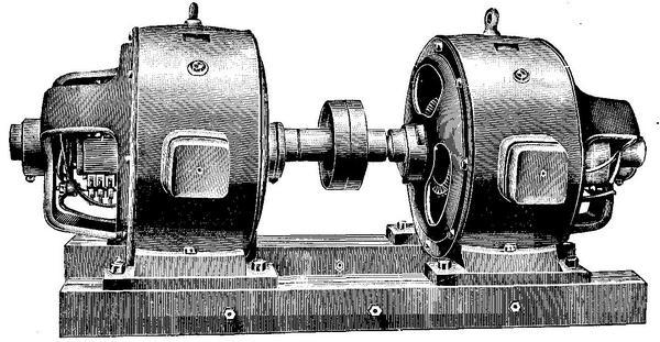 Умформер являлся сердцем электроснабжения кабинета 1930-х годов. Эта установка состояла из асинхронного двигателя с короткозамкнутым якорем и шунтовой динамо-машины (рис. 2.8). Умформер должен был стоять в отдельном помещении либо в препараторской, чтобы его шум не мешал занятиям. В препараторской помещался электрощит для управления умформером. На щите располагались амперметры, вольтметры, контрольные лампы, реостаты, двух- и трехполюсные рубильники, гнезда для подключения к трансформаторам, динамо-машине, выпрямителям, рубильникам. В аудитории располагался подобный щит, только меньшего размера. Электрический ток подводился к каждому рабочему месту посредством проводки, расположенной на стенах или под полом. На рабочих местах располагались малые щитки с розетками и предохранительными пробками. Трансформаторы и выпрямители имели большие размеры (умформер был вообще крупногабаритной установкой). Выпрямители были электролитическими. При их простоте и доступности они были громоздки и небезопасны.