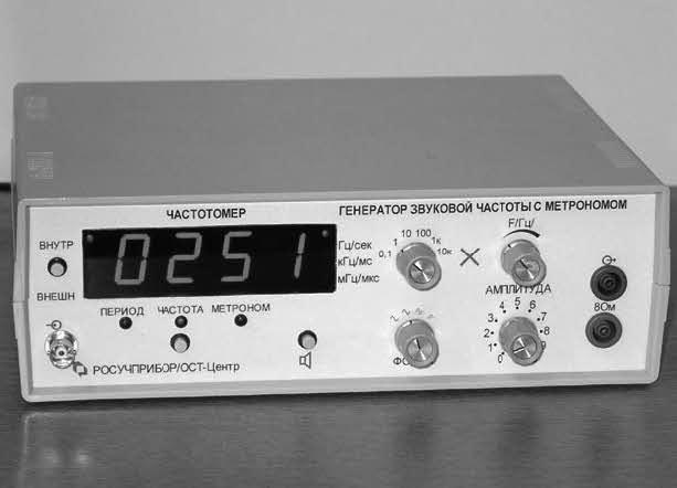 Блок «Измерительные приборы» обеспечивает: измерение времени методом совпадений с подачей звуковых сигналов в интервалах метронома 40–240 ударов в минуту (на рис. 4.10 представлен внешний вид электронного метронома); измерение физических величин с помощью датчиков, подключенных к компьютерному измерительному блоку (на рис. 4.11 дан внешний вид компьютерного измерительного блока):