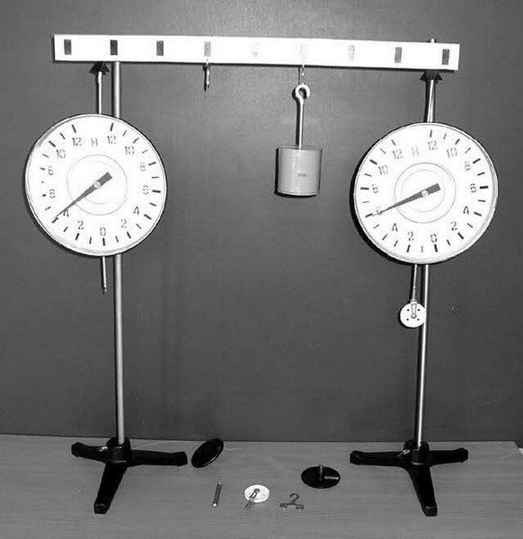 Измерение физических величин аналоговыми приборами: температуры (0–100 градусов), влажности (0–100 %), массы (до 1 кг, чувствительность 0,2 г), силы (0–12 Н, чувствительность 1 Н; 0–0,01 Н, чувствительность 0,001 Н), атмосферного давления (720–780 мм рт. ст.), давления газов (0–1,6 ат; 0–6 ат), изменений давления в жидкостях и газах (0–20 мм вод. ст.; 0–400 мм вод. ст.), плотности жидкостей (0,7–1,4 г/см3), силы постоянного тока (0–10 А), силы переменного тока (0–1 А), напряжения постоянного тока (0–15 В), напряжения переменного тока (0–250 В); осциллографирование периодических электрических сигналов синусоидальной, прямоугольной и треугольной формы (частота 0–1 кГц; амплитуда 0,05–10 В). На рисунках 4.16–4.22 представлены аналоговые измерительные приборы.