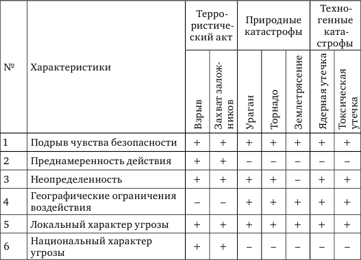 R. J. Ursano c соавторами [104] выделил различия и сходства между такими травматическими событиями, как террористический акт, природные и техногенные катастрофы (таблица 1).