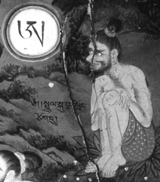 В пещере, где практиковал Бероцана (Вайрочана)50, а также в других местах он совершал затворнические практики, в ходе которых выполнял обряды различных тантрических божеств, таких как одинокий герой Ваджрабхайрава, благородная Ваджра-йогини, Ваджракилая, Хаягрива, Ямараджа, Манджушри, Ваджрасаттва, Авалокитешвара и другие. На протяжении тридцати лет он постоянно читал сто тысяч мантр Авалокитешвары51.