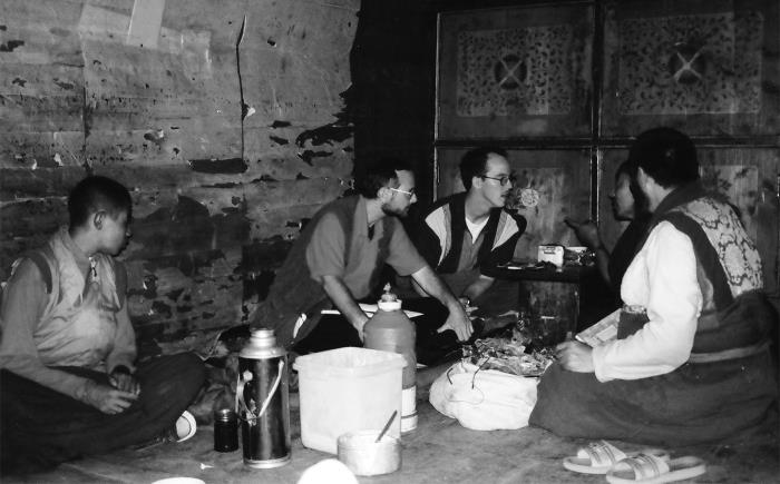 Фрэнсис Тизо и Дуглас Дакворт берут интервью у ламы Норта при поддержке ламы Пуяга в скиту Кхенпо Ачо