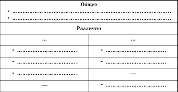 Примечание. Запишите ответ в форме таблицы. Во второй части таблицы могут быть приведены различия как по сопоставимым (парным) признакам, так и те черты, которые были присущи только одному из сравниваемых объектов (приведенная таблица не устанавливает обязательное количество и состав общих признаков и различий, а только показывает, как лучше оформить ответ).