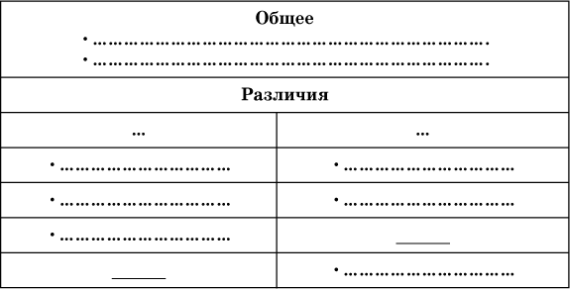 Примечание. Запишите ответ в форме таблицы. Во второй части таблицы могут быть приведены различия как по сопоставимым (парным) признакам, так и те черты, которые были присущи только одному из сравниваемых объектов (приведенная таблица не устанавливает обязательное количество и состав общих признаков и различий, а только показывает, как лучше оформить ответ).