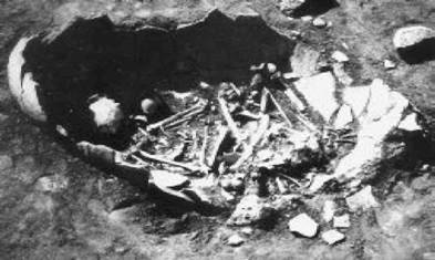 Прямо под полом хижины хоронили умерших: рыли канаву и усаживали туда покойника. Возможно, это делалось, чтобы уберечь его от зверей или соблюсти некий непонятный нам ритуал.