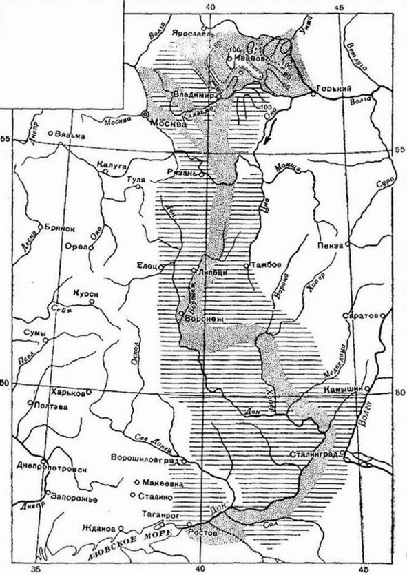 Along ninety navigable rivers.