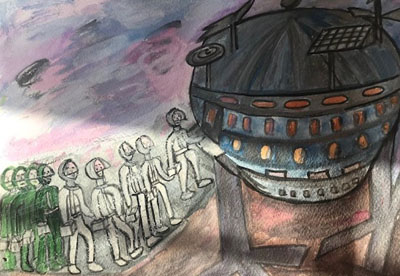 Пуэйла не могла больше молчать: – Мне рассказывала про неё астронавт Извейла. Она совершала полёт в составе медицинской экспедиции, которая следовала на эту планету. Этот полёт чуть не стоил ей жизни. Там внезапно разразилась эпидемия. Вирус был неизвестен, что осложняло борьбу с ним. Сама планета не могла с эпидемией справиться, поэтому послали межпланетную помощь. Это была целая армия врачей. Грузовые корабли везли противовирусные установки, перевязочный материал и защитные скафандры, чистое питьё и лекарства и ещё много разных вещей: медицинскую одежду, маски, халаты и прочее. У астронавта Извейлы очень крепкие нервы, но и они сдали, после того, что экспедиция увидела на конечном пункте назначения. Все двери домов были закрыты, кругом ни души. В начале, прибывшие люди растерялись, но потом собрались и начали действовать. Они проверяли населённый пункт, за пунктом; город за городом, но везде находили только пустые жилища. Обрабатывая каждый участок, они находили мёртвых людей, выполняли обряд захоронения и шли дальше. Страх усиливался ещё и тем, что по улицам бродило множество одичавших домашних кошек и собак, шерсть на них висела клоками. Никто не мог дать гарантии, что они не заражены бешенством. В одном из городов они нашли людей. Много людей. Но эти люди были почти безнадёжны. Болезнь не пощадила ни стариков, ни детей, ни животных. Помощь пришла к ним слишком поздно. Но медики принялись за работу. День за днём они вели борьбу за жизнь каждого человека. Наконец, страшная картина начала меняться. Люди открывали глаза и не понимали, где они находятся. Один старичок даже пошутил, обращаясь к Извейле, которая была в защитном костюме: – У вас, в преисподней тоже есть свой дом моделей? – Извейла, не поняв его юмора, ответила строго: – Вам нельзя говорить! Берегите силы! – После возвращения бабушка была на нервном срыве. Она долго не могла забыть эту планету, – Пуэйла замолчала. – Зачем нас сажают на эту планету? Зачем? – добавила она. Гуппи задумался: «На складе, который я осматривал, тоже было много похожих вещей». Он решил рассказать товарищам об увиденных вещах на складе: – Я обследовал помещения, которые мне удалось открыть. Они поразили меня своим вмещением и вот, что я обнаружил в них: они забиты материалами, о которых говорила Пуэйла. К тому, что везла экспедиция Извейлы, на этом корабле добавлены установки с насосами и металлические роботы с крестами на костюмах. Может, ещё что-нибудь обнаружу, когда вскрою остальные помещения? Видимо, мы должны оставить эти запасы на планете Цепран и проследовать дальше. Не будем отчаиваться, эпидемия была давно, будем надеяться, что у нас заберут груз и выпустят нас следовать дальше. Займите, свои места, мы приступаем к посадке. – Корабль встал, как вкопанный. Выполнив формальности, командир приступил к открытию шлюзов. Только он успел набрать команду, как заработала связь, и голос диспетчера сообщил: – Центральный шлюз не открывать, ждите дальнейших указаний. Команда отправилась отдыхать. – По всей вероятности, нам даже не дадут выйти. Что же твориться на этой планете? – заметил Гуппи. – Хорошо, что нам не дадут выйти, – ответила Пуэйла. Жюль, в это время просматривала сводки в автономной считке, как на рабочем компьютере появилось сообщение из Межпланетного центра: – Космоинтернет! – закричала он