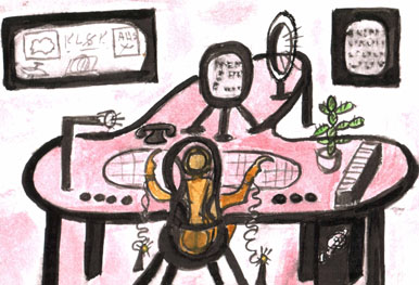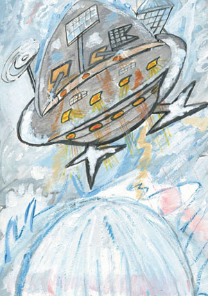 Выдумка КельвинаЖюль решила сначала сходить за скафандром для Гуппи. Повернув налево от душевой, вдруг увидела Кельвина. Она очень удивилась, что он так быстро вернулся от командира, хотела подойти к нему, чтобы напомнить, что его ждёт Гуппи. Но что-то удержало её, она остановилась, наблюдая за товарищем. Он, не замечал Жюль. Его лицо было сосредоточенно, будто бы он вслушивался в чью-то речь. Внимание подруги привлекла светящаяся точка, которая пробежала по руке Кельвина и тут же пропала. Через некоторое время точка появилась снова, тут же следом за ней, по костюму астронавта, пробежало множество таких же точек и исчезло. Девушка сразу вспомнила планету Драконов и роботов-надсмотрщиков. Там были тоже такое явление, только с лампочками. Тогда её друг пояснил ей его назначение: – Свечение точек означает передачу информации.