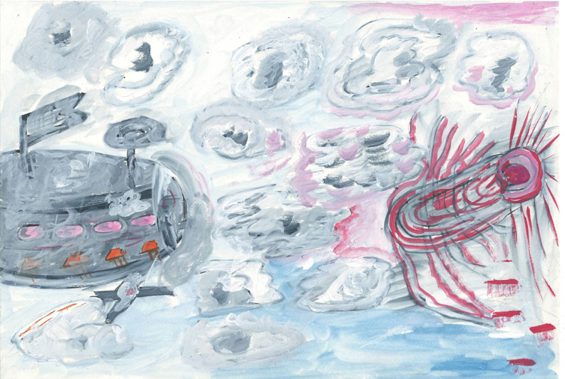 Впереди было бело – розово-сиренево- серое пространство. Казалось, что плотные, сиренево-серые сгустки, похожие на головки огромных цветов, на длинных ножках, распластались в разные стороны.