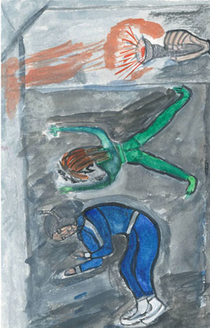 Гуппи спустился с кровати, скатал подстилку и накрыл её одеялом, затем двинулся к двери, но открыть её не мог. Он спрятался за кушетку и стал ждать. Ждать пришлось недолго, в комнату опять вошёл человек, он направился прямо к кровати краснопланетянина, оставив открытой дверь. Не теряя времени, больной выскользнул в коридор и, ползя, проворнее ящерицы, скрылся в одной из комнат с приоткрытой дверью. Ему под руку попало, что-то мягкое. Это был динозаврик Вася, который жалобно заскулил. Тело его было огненное. Гуппи прижал его к себе и перевёл дух. Немного погодя, он подполз к двери и закрыл её, установив новый шифр.