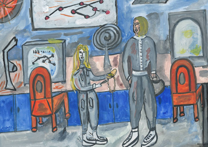 Пуэйла открыла глаза. – Как я могла заснуть? Я хорошо отдохнула перед сменой. – Быстренько просмотрев помещения корабля и, не обнаружив в них ничего подозрительного, она переключилась на комнату второго компьютера. Но, кроме чёрного пятна, напоминающего какую-то глыбу, на экране ничего нельзя было разобрать. – Что же случилось со мной? – она задумалась. Перед глазами всплыло лицо человека, которое сидело за компьютером, но где она его видела, не могла вспомнить. – Надо всё восстановить с начала дня. Я проверяла работу приборов. Вдруг на одном приборе я – Что же случилось со мной? – она задумалась. Перед глазами всплыло лицо человека, которое сидело за компьютером, но где она его видела, не могла вспомнить. – Надо всё восстановить с начала дня: Я проверяла работу приборов. Вдруг на одном приборе я увидела команду и …, – дальше она ничего не помнила. Не смогла она припомнить и того, как она оказалась в кресле командира и заснула. Погрузившись в свои размышления, она совсем отошла от реальности, мысли унесли её к деду и бабушке на родную планету, такую прекрасную, где небо похоже на рыже-жёлтую кору апельсина, усеяно множеством голубых звёзд. Она, в необыкновенно-красивом костюме, на котором, словно живые разбросаны любимые цветы-Васильки, увидела своего папу, который говорил ей: – Мой родной Василёчик мы встретимся скоро.