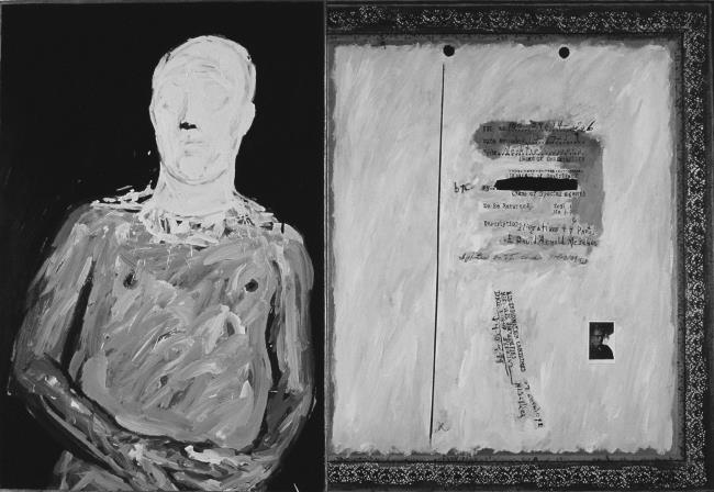Фото 3. Арнольд Мешес. Досье ФБР, 35. 2002. 152 х 221 см. Краска и бумага на холсте. Из коллекции художника. Репринт The FBI Files © 2004 by Arnold Mesches, by permission of Hanging Loose Press