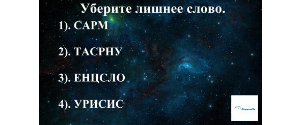 В вопросе представлен список из трех представителей солнечной системы (Марс, Сатурн, Солнце) и представительницы созвездия Большого Пса (Сириус).