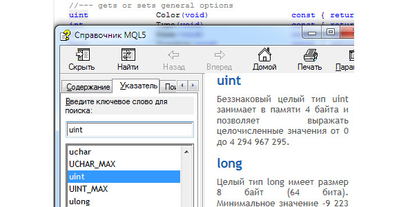 Справочник MQL5 (2) – это справочник по языку программирования MQL5. Данный справочник содержит огромный объем информации разбитый на два блока.