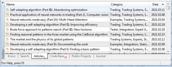 – Search – Вкладка файлового поиска или поиска на mql5.com. Неактуальна для данного курса.