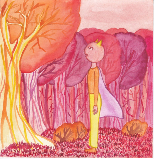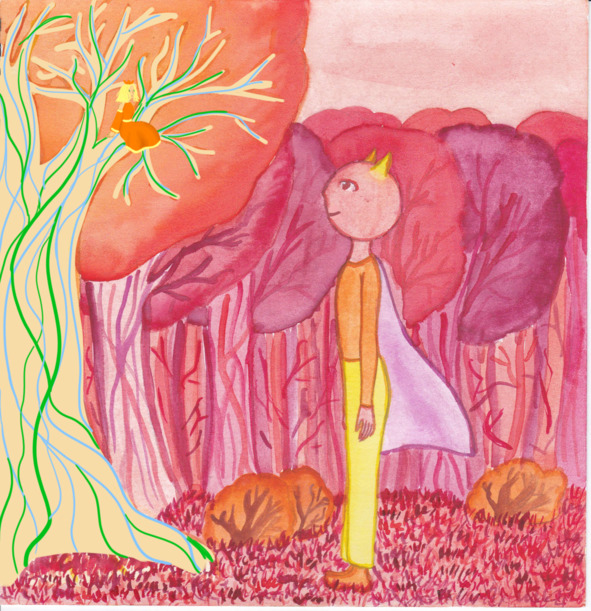 Принцесса же забралась в дупло, там было глубоко и тепло. Было много мха и листьев, которые создавали это тепло. Птицы красного леса сплели принцессе одеяло из листьев и хвои и накрыли ее этим одеялом. Ночь была тихая и спокойная.