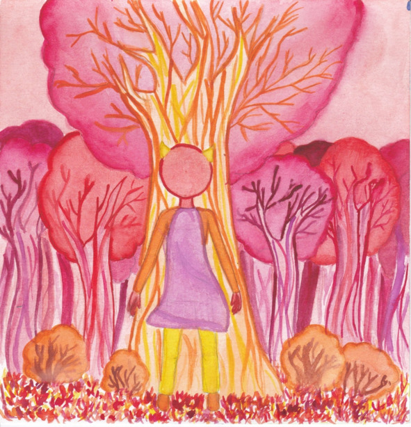 – Вон, видите, сколько вокруг деревьев и по ним стекает и поднимается вверх жидкость красных оттенков? – спросила принцесса