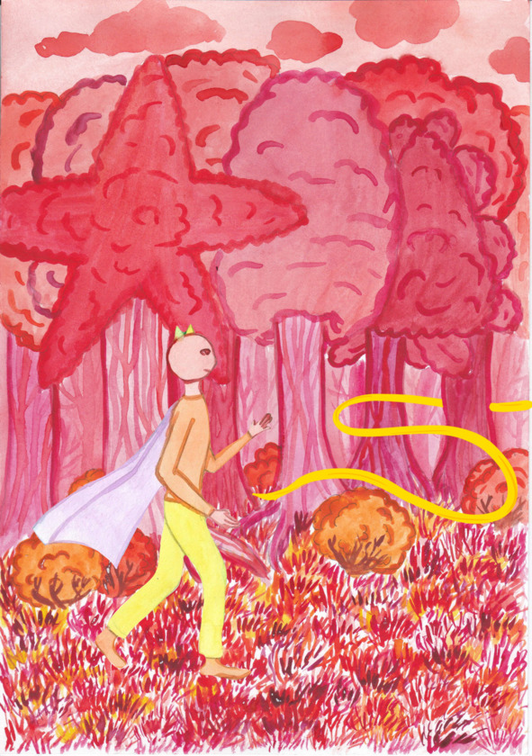 – Что же это такое? – произнес вслух красный великан, и подошел ближе. В этот момент потоки стали еще мощнее и жарче, и чем ближе приближался Космо к дереву, тем сильнее и жарче становились эти потоки. Наконец стало так жарко, что красный великан не мог подойти больше ни на шаг.