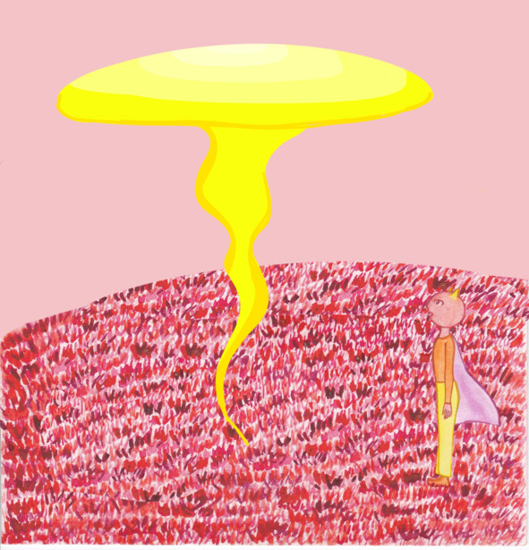 Эти потоки были желтого цвета и взмывались над землей высоко-высоко, намного выше, чем рост Космо и сливались ярким светом в единый диск, который крутился, словно карусель на высоте, но свет был настолько яркий, что красный великан Космо не мог его разглядеть в деталях.