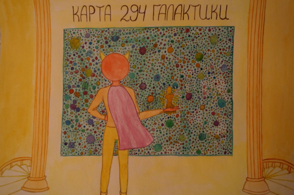 – Я думаю, мы не успеем посетить все 50 планет нашей огромной Галактики в одно путешествие, это очень долго и утомительно – говорила Лея, сидя у Космо на руке и показывая на карту.
