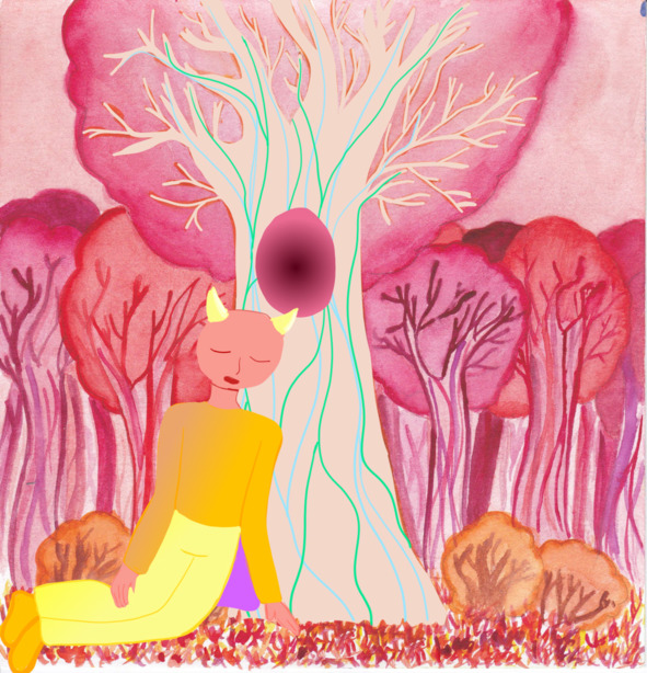 Космо смотрит на необычное дерево и видит желто-огненные потоки