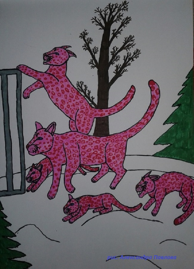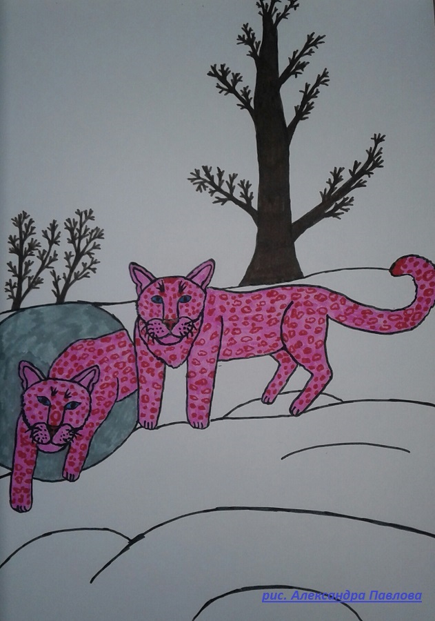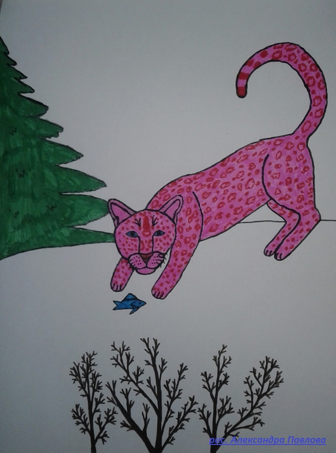 – В Высоких горах на дне глубоких озёр растут розовые и красные кораллы. Цвет шерсти помогает рыбным леопардам оставаться незаметными и для рыб, и для охотников. – пояснил Леон.