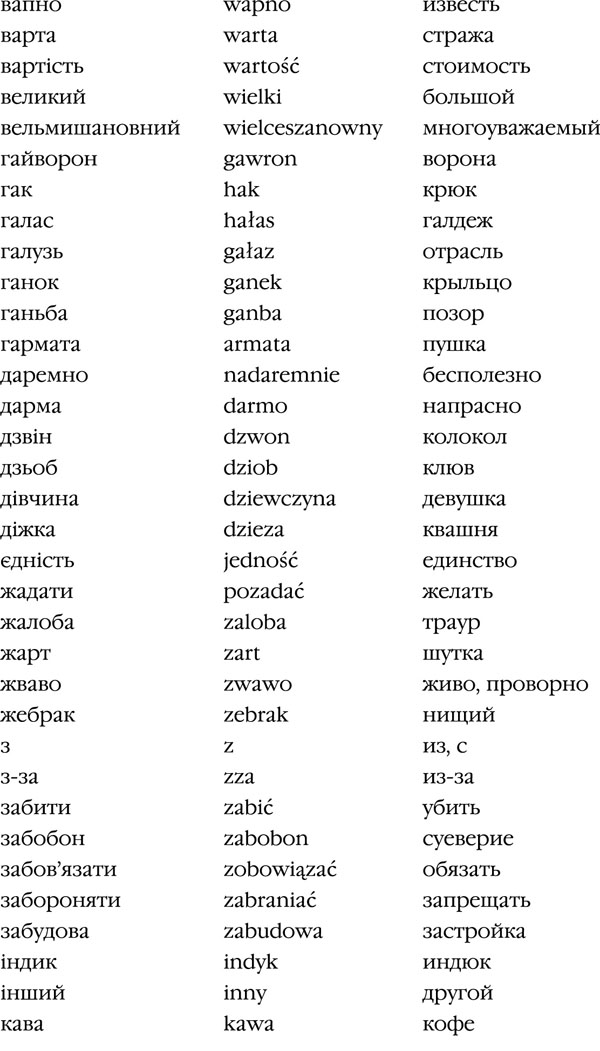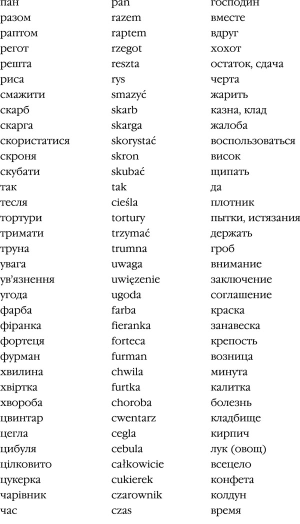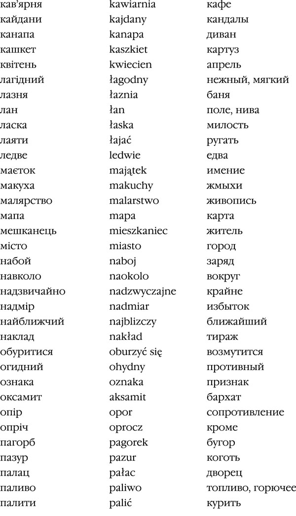 Данный список можно продолжать очень долго. Если изъять из современного украинского языка польские заимствования, элементарное бытовое общение станет крайне затруднительным.