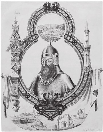 Портрет Ермака. Худ. Васильев Р. А. Гравюра. XIX в. Тобольский историко-архитектурный музей-заповедник