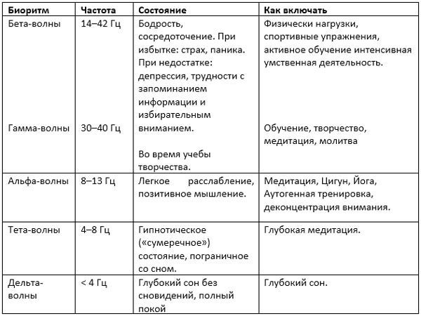 Так, психотехники концентрации внимания дают возможность «активировать» альфа-волны, а психотехники, повышающие уверенность в себе, в сочетании с определенными физическими упражнениями переводят головной мозг в режим бета-волн.