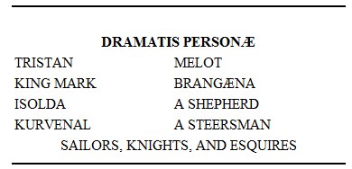 ACT ITristan, a valiant Cornish knight, is bringing Isolda, princess of Ireland, over as a bride for his uncle, King Mark. He is himself in love with her, but owing to a blood feud between them, forces himself to conceal his passion. Isolda, in anger at his seeming unkindness, attempts to poison herself and him, but her attendant, Brangæna, changes the draft for a love potion, which enflames their passion beyond power of restraint.