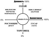 Как мы уже выяснили, существует четыре типа мировоззрений (рис. 2), т. е. четыре аксиотипа, которые условно можно именовать: философ, миссионер, ростовщик, гусар.